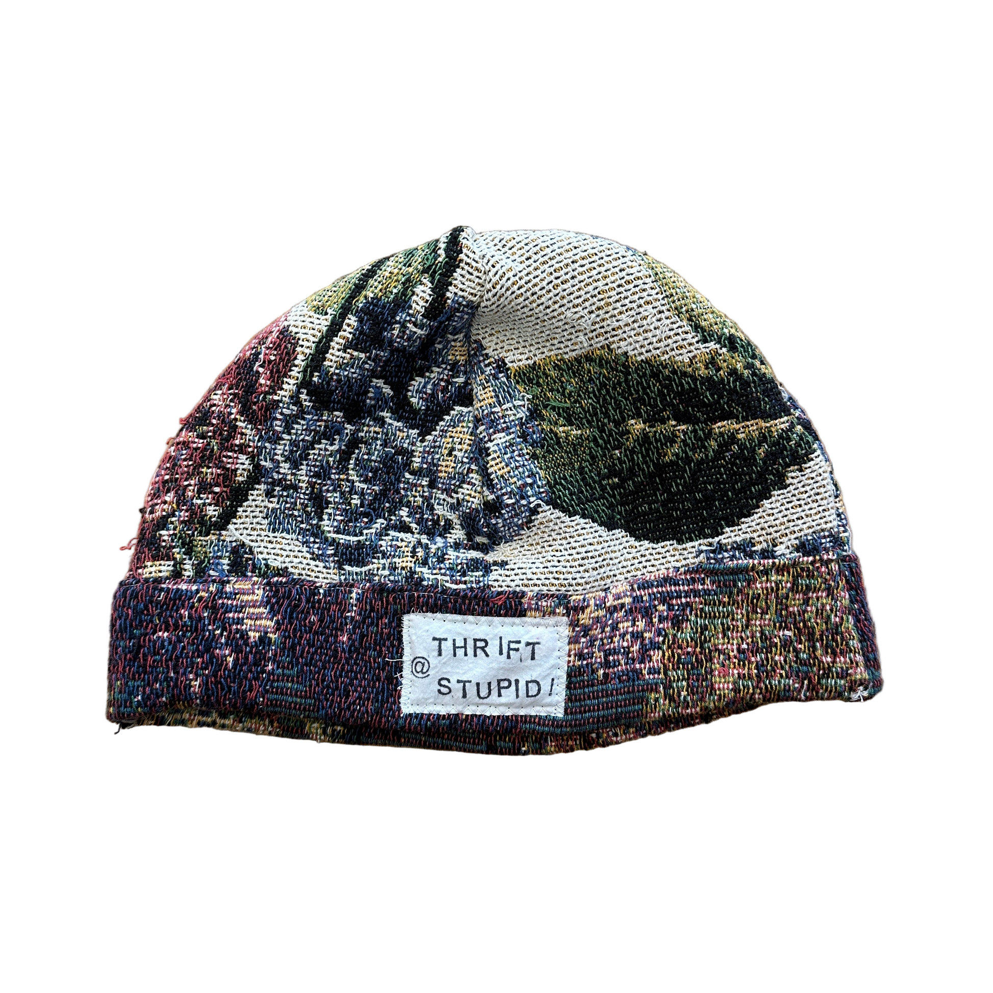 Beanies hand made with upcycled textiles by Thrift Stupid!